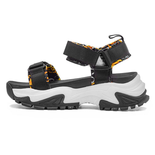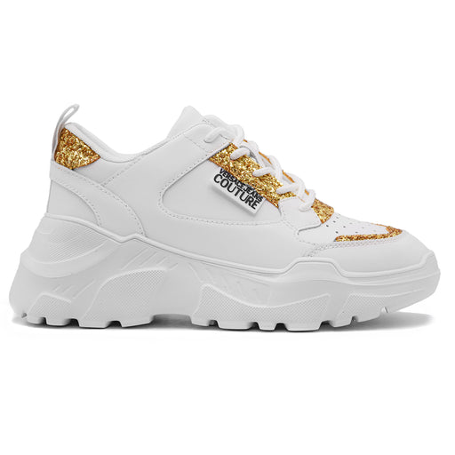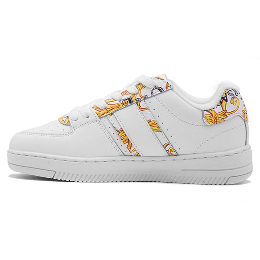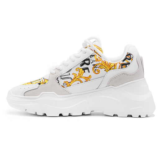 Le stampe audaci e i dettagli iconici, come il logo Versace Jeans Couture e le fibbie dorate, rendono le calzature uniche e riconoscibili.
