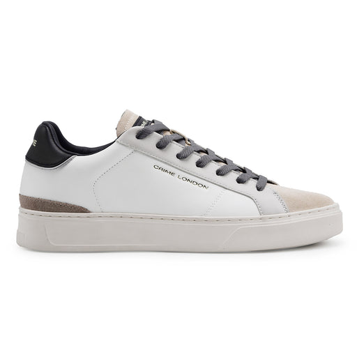 Crime• Sneakers uomo Crime London BLADE RAW SHADE • Tomaia in pelle liscia bianca e inserti in camoscio beige • Dettaglio sul collarino in pelle nera a ...