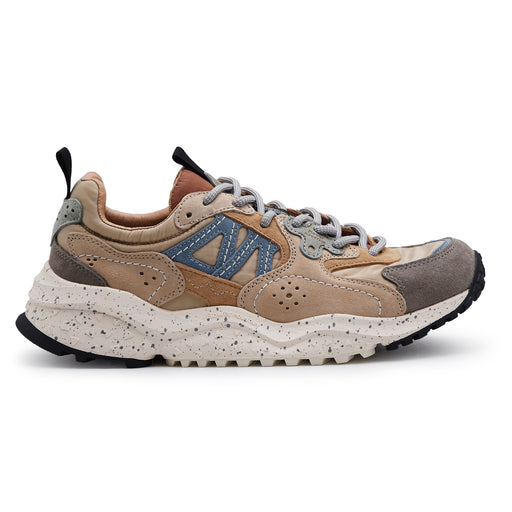 Flower Mountain• Sneakers uomo Flower Mountain SOLIN • Tomaia in nylon beige con pelle scamosciata grigia e dettagli celesti • Soletta interna in sughero naturale...