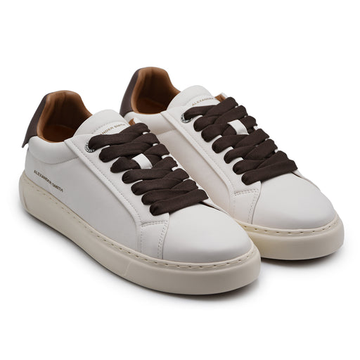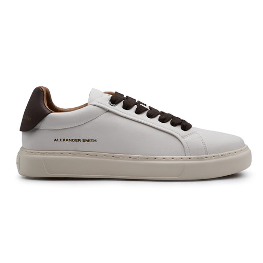 Alexander Smith• Sneakers uomo Alexander Smith modello SOHO • Tomaia in pelle bianca con laccio e tallone marrone a contrasto • Occhielli in metallo logato • Logo...