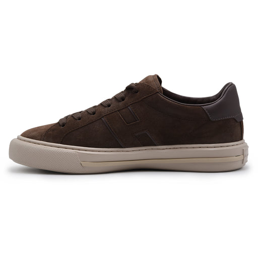 Hogan• Sneaker Hogan uomo modello H691 • Morbida pelle scamosciata marrone cioccolato • Dettagli in pelle tono su tono • Iconica H laterale con effetto ...