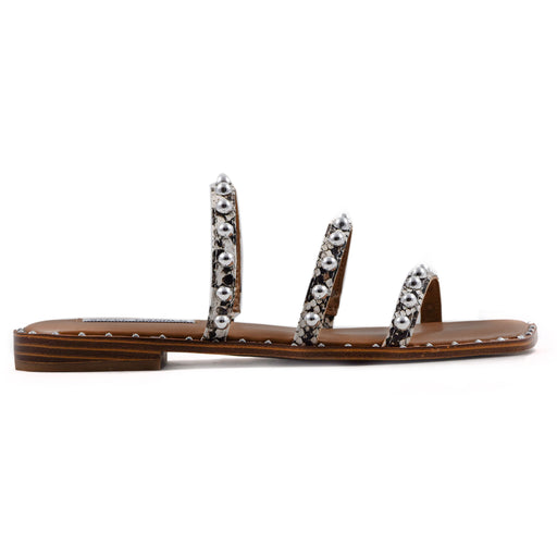 Steve Madden• Sandalo basso a infradito in similpelle nero • Contrasti di cinturini • Ampia fascia con hardware a catena oversize • Suola in gomma • Tacco di 1...