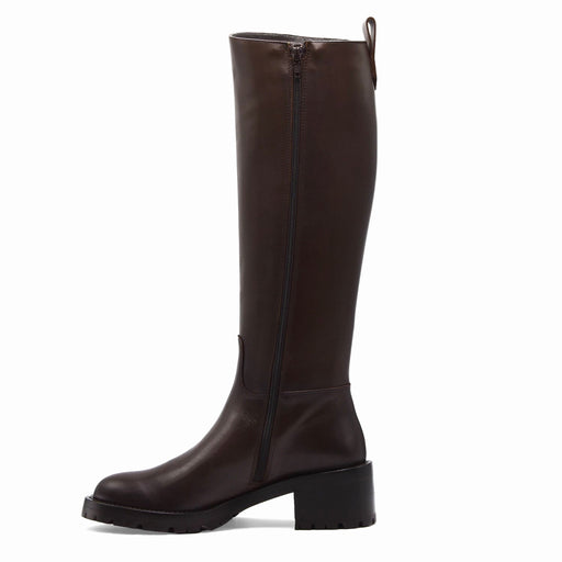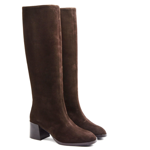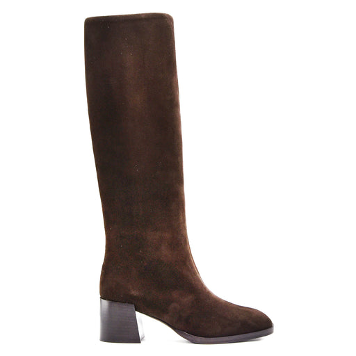 Jubilé• Stivale tubolare Jubilé donna • Pelle scamosciata marrone testa di moro • Punta stondata con linee morbide • Interno foderato in pelle • Suola i...