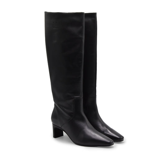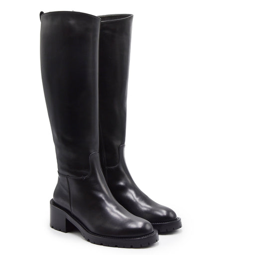 STM• Stivale in pelle nero • Gambale dritto • Punta stondata e cuciture a vista tono su tono • Mini cerniera nel laterale interno • Interno in pelle •...