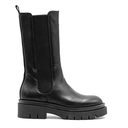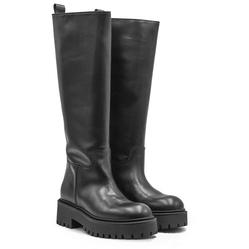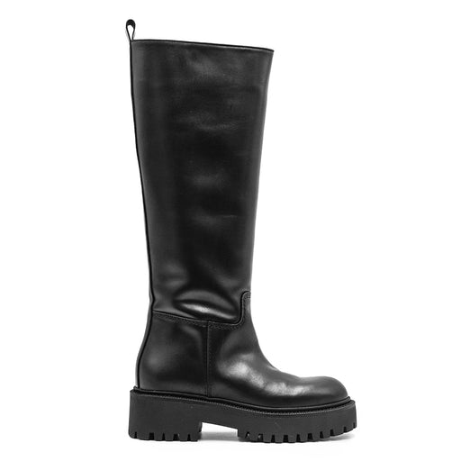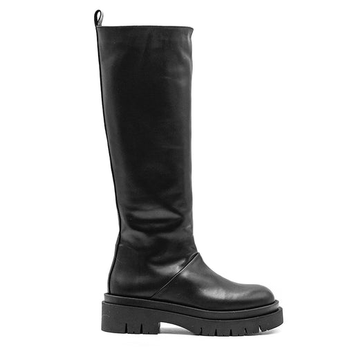 STM• Stivale in pelle nero • Gambale dritto • Punta stondata e cuciture a vista tono su tono • Mini cerniera nel laterale interno • Interno in pelle •...