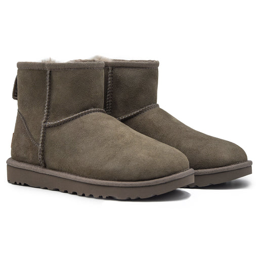 UggStivaletto Ugg da donna Classic Mini II in camoscio chestnut. Punta stondata e cuciture overlock sulle cuciture. Logo nel retro. Interno in montone...