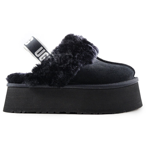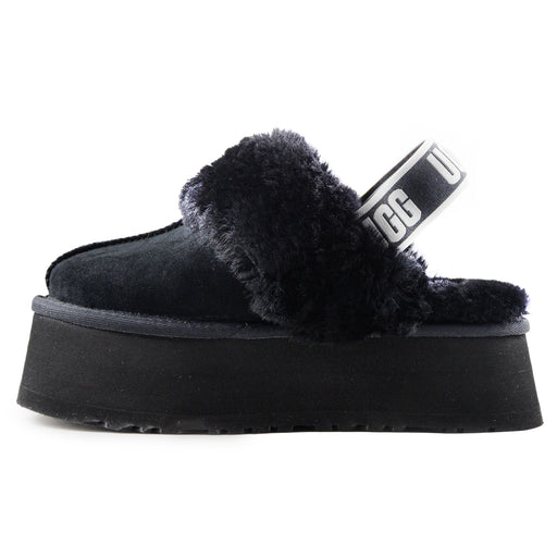 UggSabot Ugg da donna modello Funkette in camoscio nero resistente all’acqua. Punta stondata e cucitura frontale a vista. Cinturino posteriore elastic...