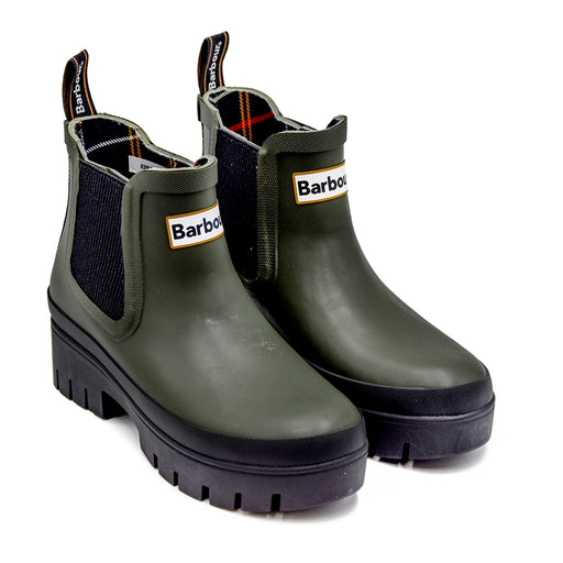 Barbour• Stivaletti chelsea in gomma militare • Stivali da pioggia mix di praticità e stile • Elastici laterali • Logo frontale • Interno in pelliccia sin...