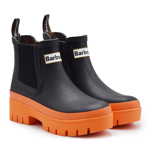 Prezzo di partenza €119,00 - Prezzo di partenza €119,00Prezzo di partenza€119,00€119,00 - €119,00Prezzo Attuale €119,00| /Stivaletti Donna Barbour Halton Nero Suola Arancione In Gomma