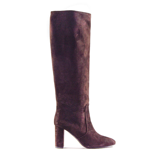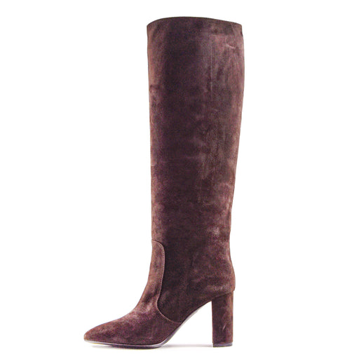 Via Roma 15• Stivali Via Roma 15 modello Desire • Tomaia in morbida pelle in camoscio testa di moro • Nella parte laterale iconica "V" in oro • Interno inter...