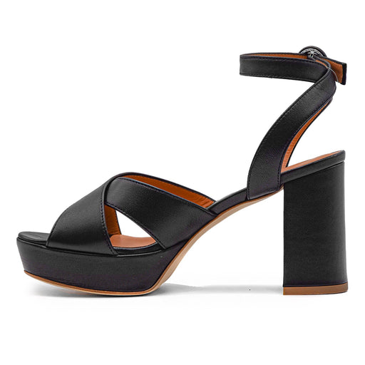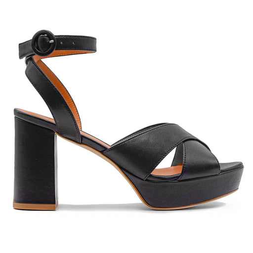 Via Roma 15• Sandalo in pelle nero • Tomaia con fasce incrociate • Abbellimento di turchesi • Punta quadrata • Interno in pelle • Suola in cuoio • Tacco di 10...