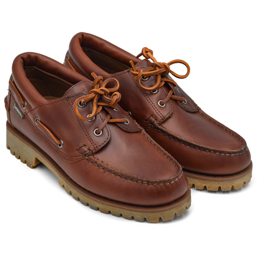 Sebago• Men's lace-up loafer in brown full grain leather • Model inspired by the famous sailor Gary Jobson and his victories in the 80s • Unlined uppe...