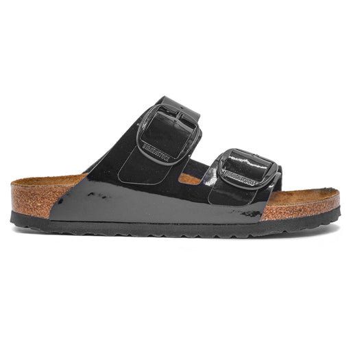 Birkenstock• Big Buckle sandal in black Birko-Flor • Glossy external coating • Logoed pin buckles with pin buckle • Rounded tip • Anatomical cork latex fo...