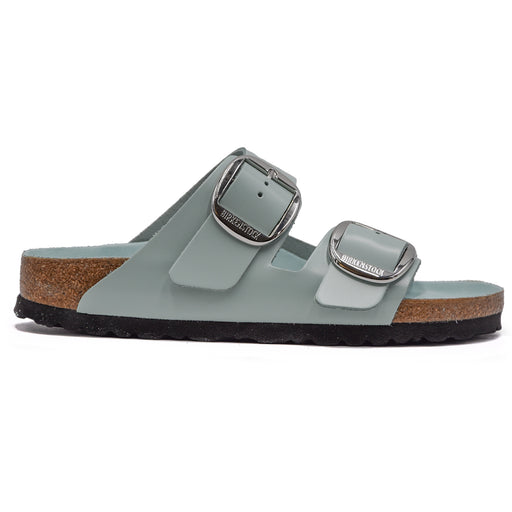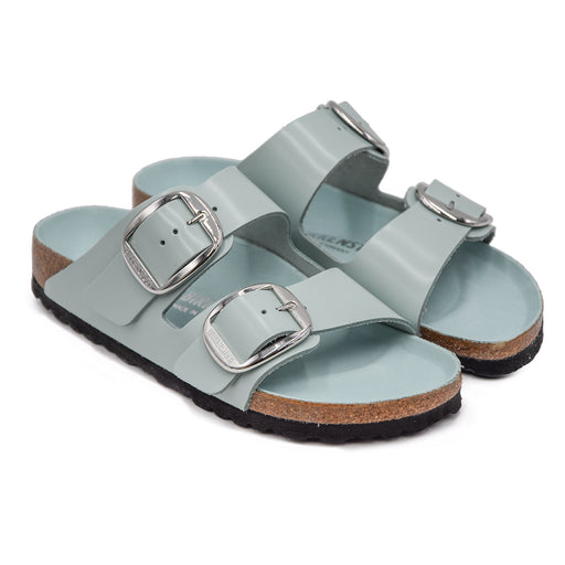 Birkenstock• Arizona Big Buckle sandal in turquoise leather • Brilliant lacquered finish • Bands adjusted by silver metal pin buckles • Rounded tip • Ana...