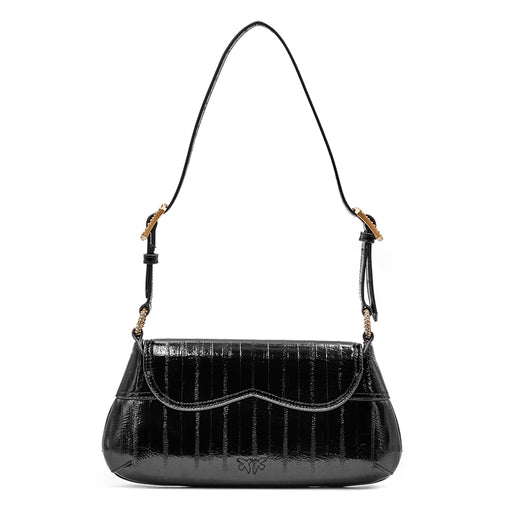 Pinko• Pinko women's bag in black hammered leather • Flap closure • Iconic Love Birds ring in gold metal • Adjustable shoulder strap for shoulder or...