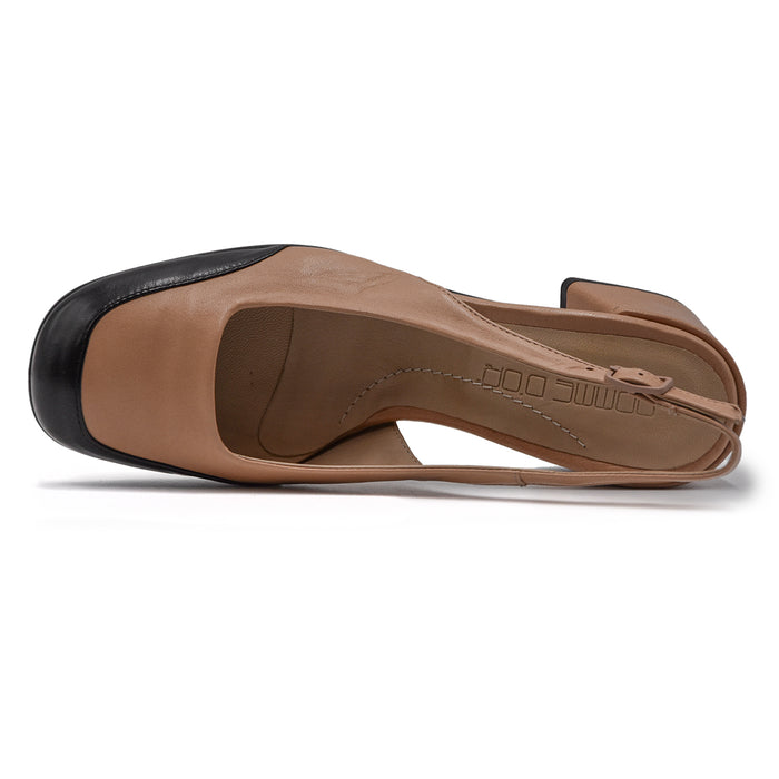 Chanel Beige Black Pomme D'Or With Comfortable Covered Block Heel