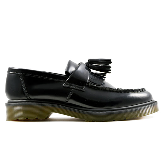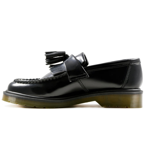Dr. MartensDr. Martens Moccasin in black polished smooth leather. Leather clamp with tassel and fringe. Visible stitching, non-slip rubber sole with Goodyear ...