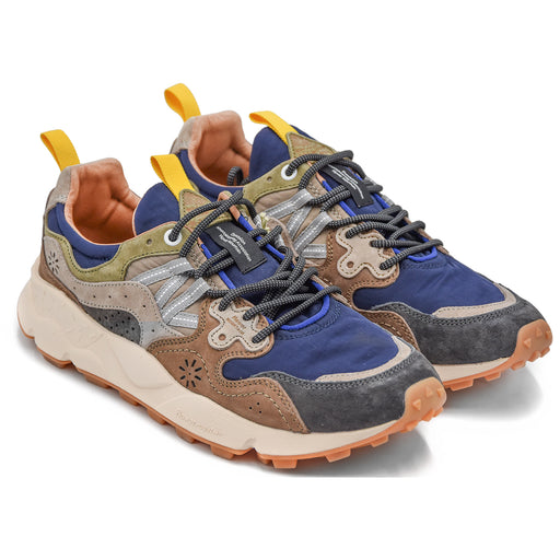 Flower Mountain• Flower Mountain Yamano 3 men's sneakers • Grey nylon upper with blue and brown suede inserts • Antibacterial natural cork insole • Contrastin...