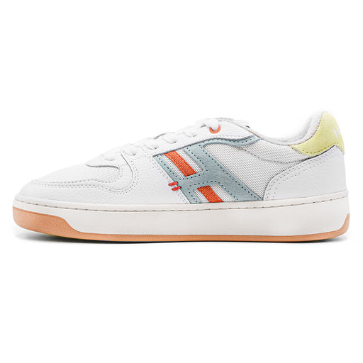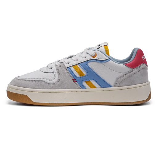 • White leather and suede sneakers • Multicolor details • Fabric interior • Removable memory foam footbed • Light blue elongated logo • Logo ...