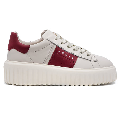 Hogan H-Stripes Women's Sneakers with Ivory Nappa and Bordeaux Details