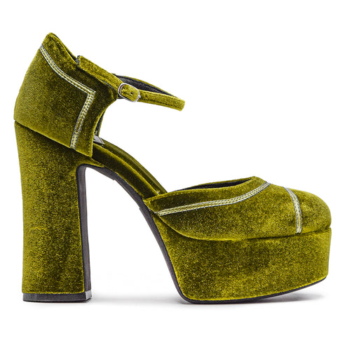 Jeffrey Campbell• Orange velvet pumps • Closed heel and toe • Ankle strap • Almond tip • Leather interior • 12 cm column heel • Maxi plateau of 4 cm • Rubb...