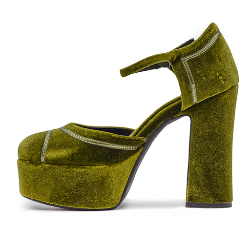 Jeffrey Campbell• Burgundy velvet pumps • Closed heel and toe • Ankle strap • Almond tip • Leather interior • 12 cm column heel • Maxi plateau of 4 cm • Ru...