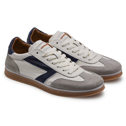 Alexander Smith• Sneakers uomo Alexander Smith modello THAMES • Morbida pelle bianca con pelle scamosciata grigia • Dettagli marrone con laccio aggiuntivo dello s...
