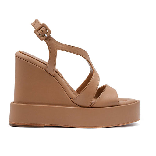 Paloma Barceló• Tan sandals • Maxi front band with cut out • Without back • Leather interior • 12.5 cm heel, 5 cm platform • Regular fit • Item: 8323117