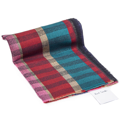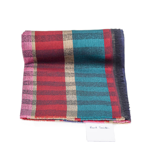 Paul Smith• Multicolored viscose and cotton blend scarf • "Signature Stripe Check" motif • Finishing with frayed edges • Made in Italy • 180 x 50 cm • ...