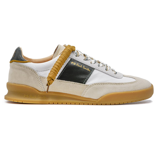 Paul Smith• White leather sneakers • Tobacco suede details • Perforated toe for greater breathability • Removable insole • Grooved sole with mini logos ...