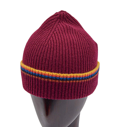 Paul Smith• Papala in soft burgundy wool • Ribbed details • Folded brim with "Artist Stripe" finishes • Made in Great Britain • Item: M1A-202G-AV357