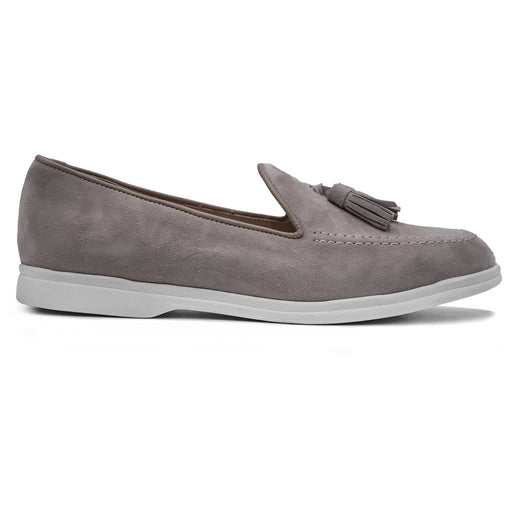 Riccardo P.• Ice suede moccasin • Tassel embellishment • Visible stitching • Rounded tip • Leather interior • Lightweight white rubber sole • Regular f...