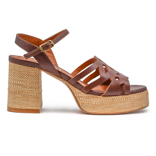 Matteo Pitti• Cigar-colored leather sandal • Braided detail • Adjustable ankle strap • Raffia sole • Leather interior • 8 cm heel with 3 cm platform • Made in...