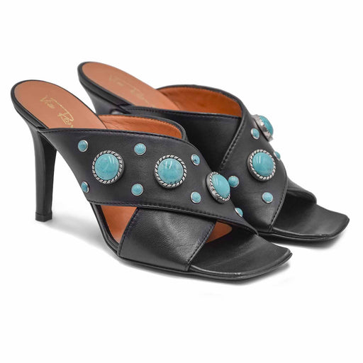Vivien Lee• Vivien Lee black leather sandal • 10cm leather-coloured heel • Side studs on the plateau for a touch of uniqueness • 4cm platform for greater co...