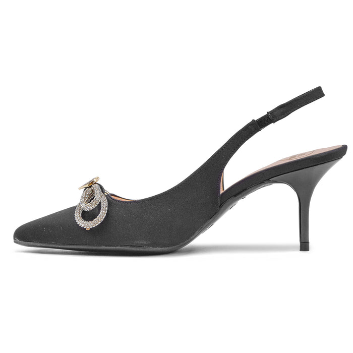 Love Moschino Black Satin Chanel With Shiny Mid Heel Women