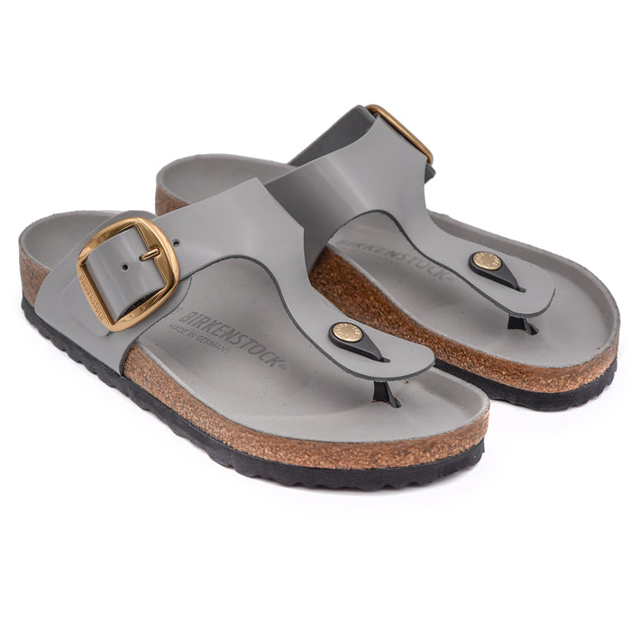 Sandali Birkenstock Donna Gizeh Grigio In Pelle Verniciata