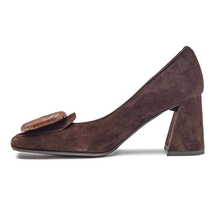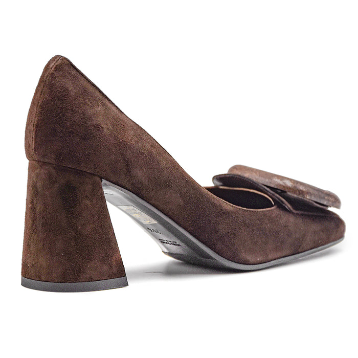 Mocassini Chantal 1962 Marrone Con Tacco Svasato Largo Donna
