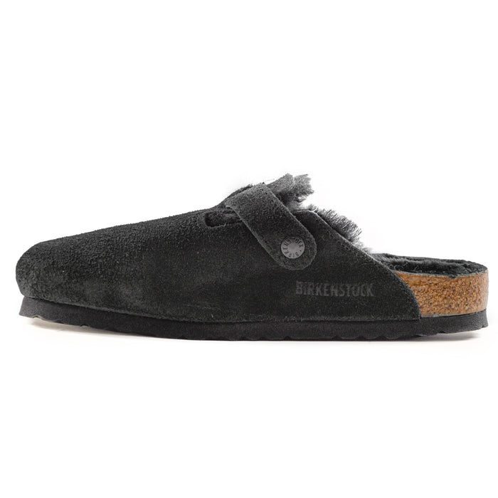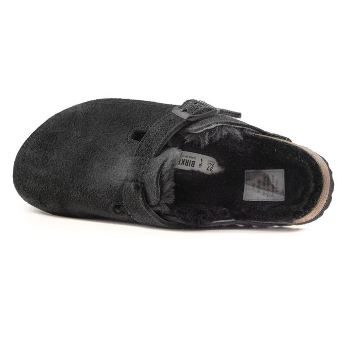Sabot Birkenstock da donna Made in Germany, modello Boston VL Shearling black in pelle scamosciata.