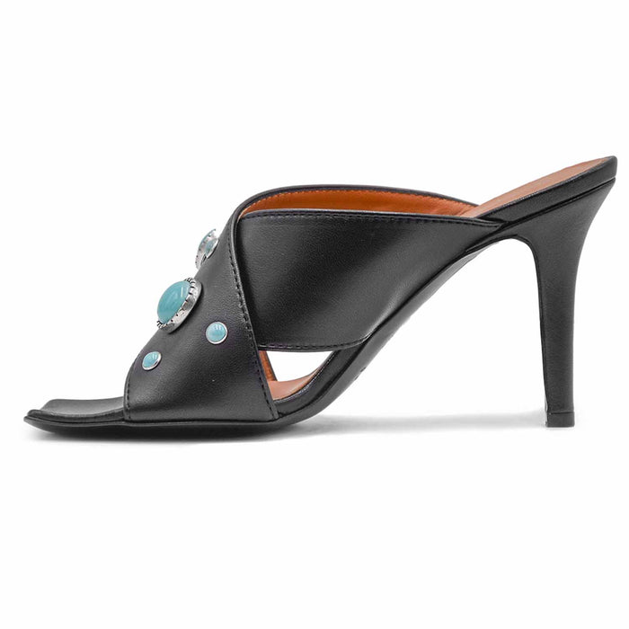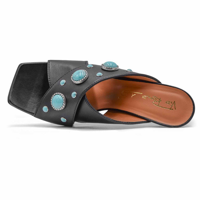 Sandali Donna Via Roma 15 Nero Cura Dei Dettagli Con Turchesi