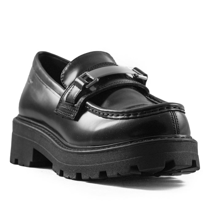 Mocassino Vagabond da donna modello Cosmo 2.0 in pelle spazzolata lucida nero.