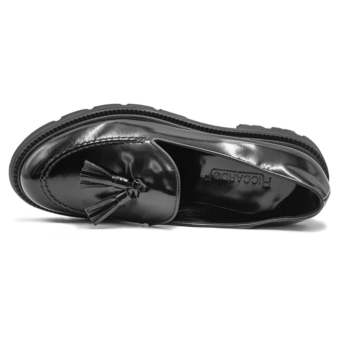 Mocassini Donna Nero In Spazzolato Con Nappine Riccardo P.