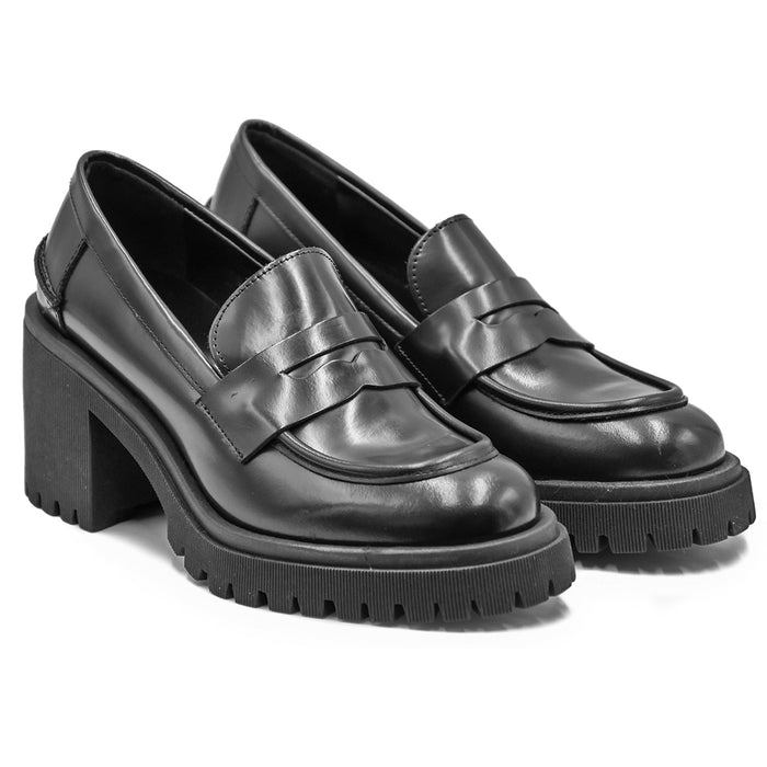 Mocassini Nero Donna Mezzo Tacco E Suola Dentellata Riccardo P.