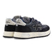 • Pelle scamosciata blu con inserti in tessuto tecnico