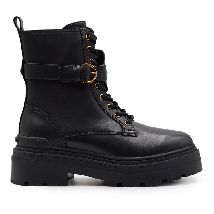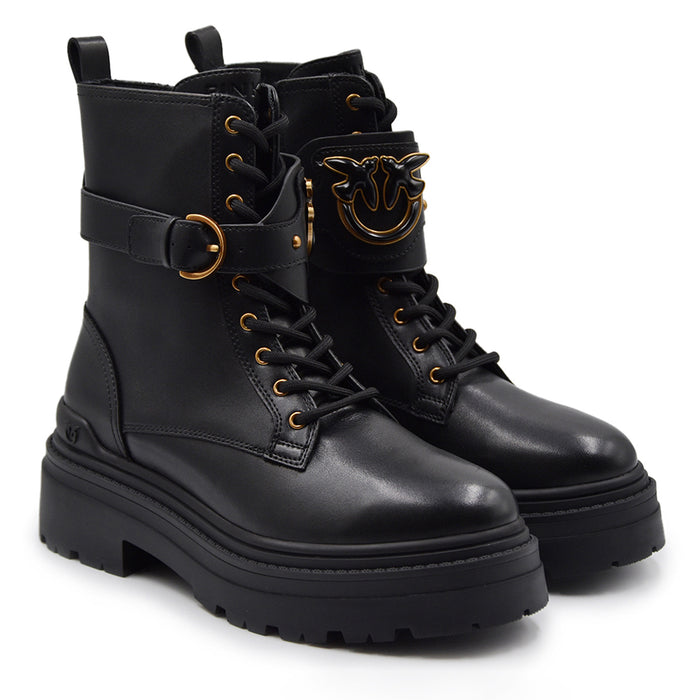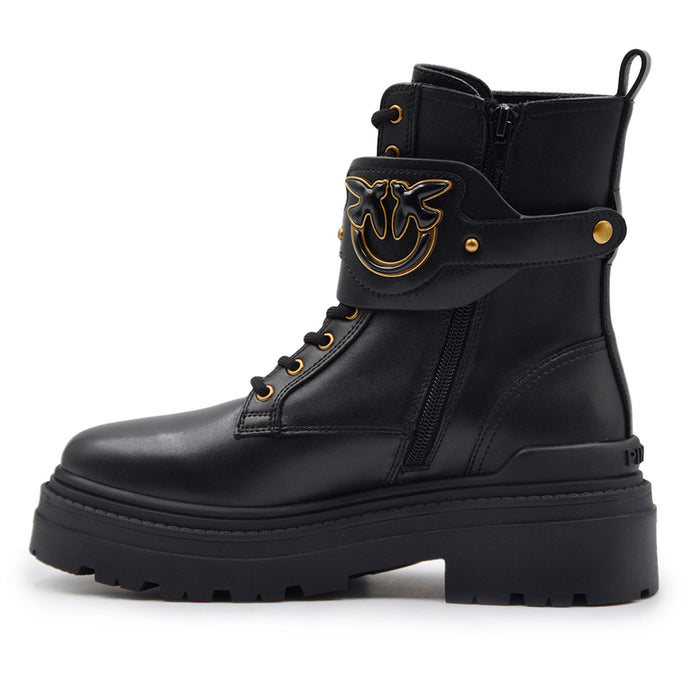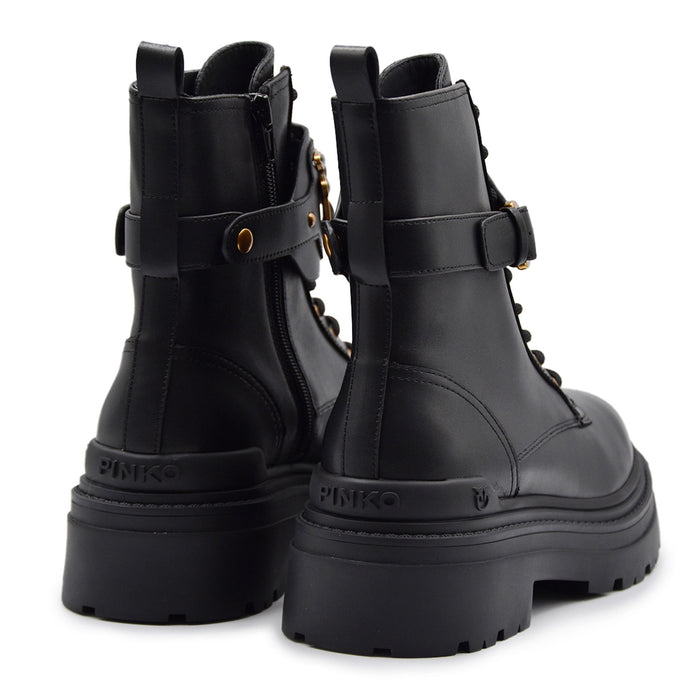 Anfibi Donna Pinko Nero Pelle Cinturino Logato Design Grintoso